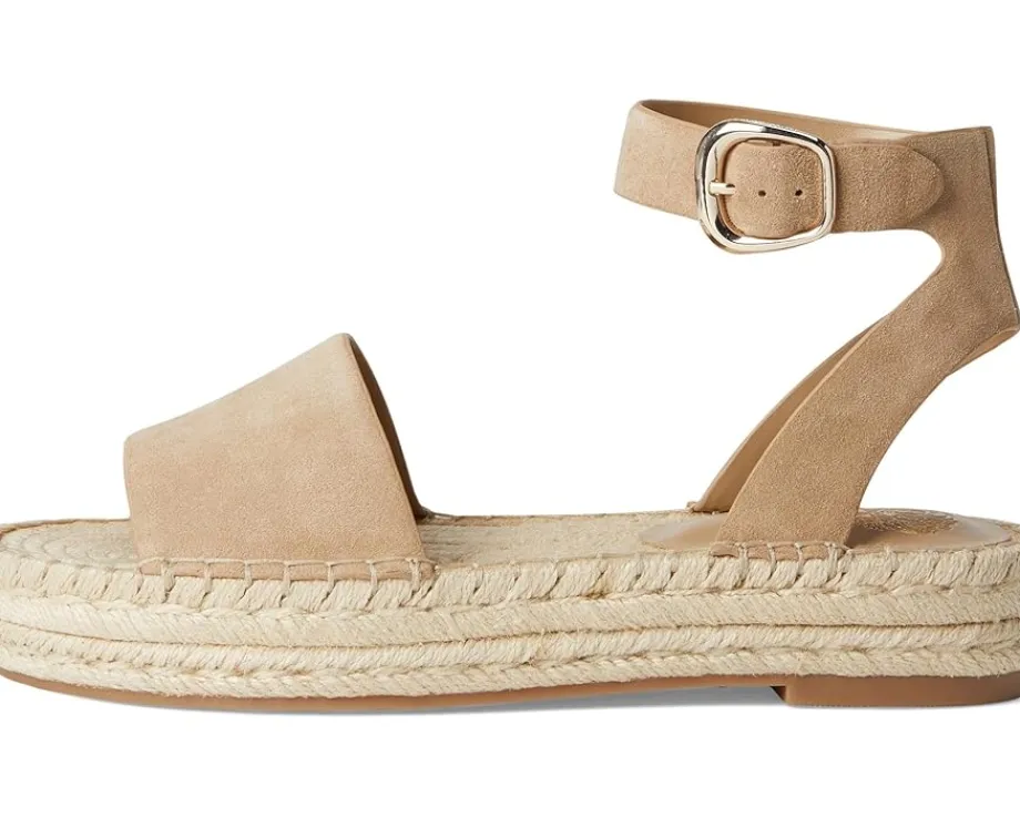 - A braided jute platform and a chic leather upper give these Vince Camuto® Darna Espadrille Platform Sandals a marvelous look. With a platform heel, the footwear features buckled ankle strap and rounded open toe silhouette.