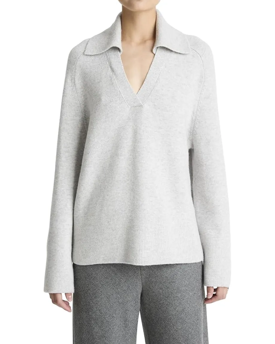 - Designed with an easy body and elongated tunic length, the oversized polo sweater is crafted from a plush blend of wool and cashmere. With its relaxed fit, this top pairs perfectly with your favorite pants or denim.