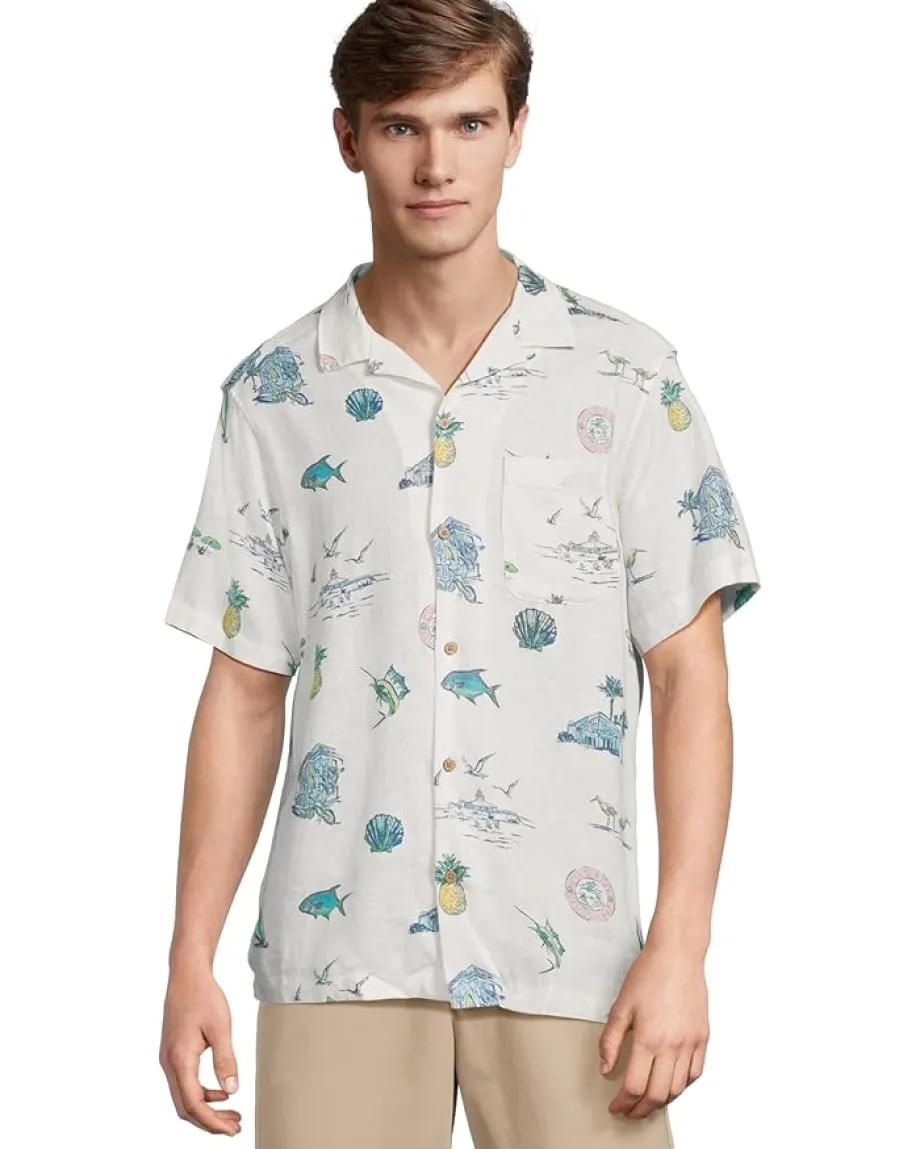 - The vineyard vines® Gasparilla Icons Short Sleeve Cabana Shirt blends coastal cool with festive fun, perfect for every warm-weather occasion. Designed in a classic fit that flatters all and offers versatile wear, tucked for polish or untucked for ease – this shirt brings effortless charm to your wardrobe. The crisp collared neck and button front closure deliver a timeless silhouette, while the short sleeves keep things breezy. A whimsical Gasparilla-themed print adds a bold personality twist, making it ideal for beach parties, boat days, or backyard hangs. Complete with a handy chest pocket for stashing sunnies or essentials, this printed cabana shirt is your go-to pick when you want to stand out while staying cool.