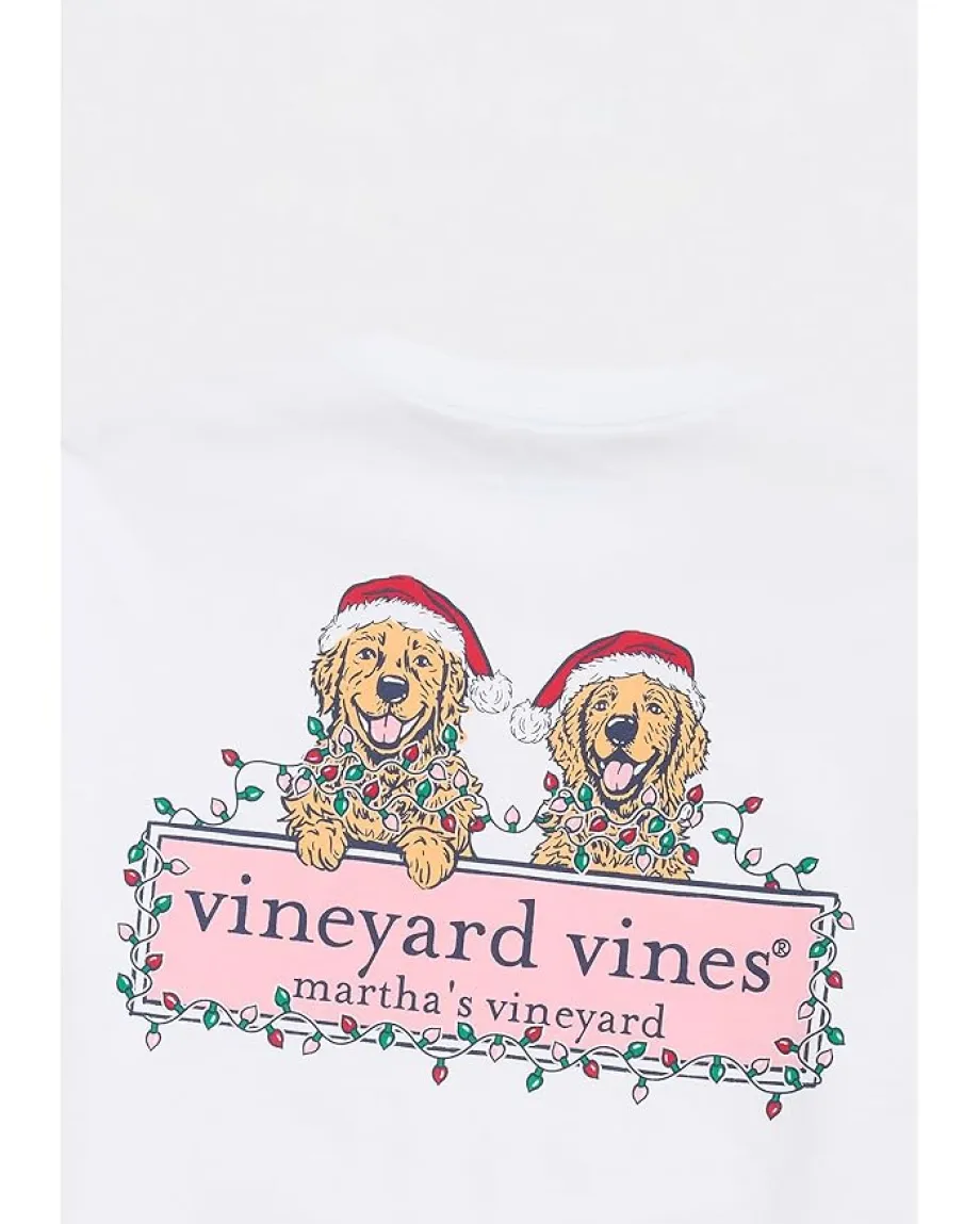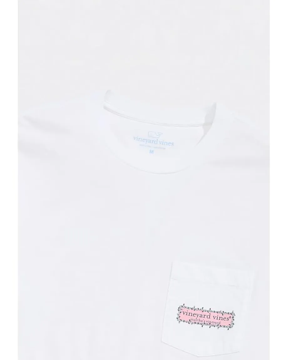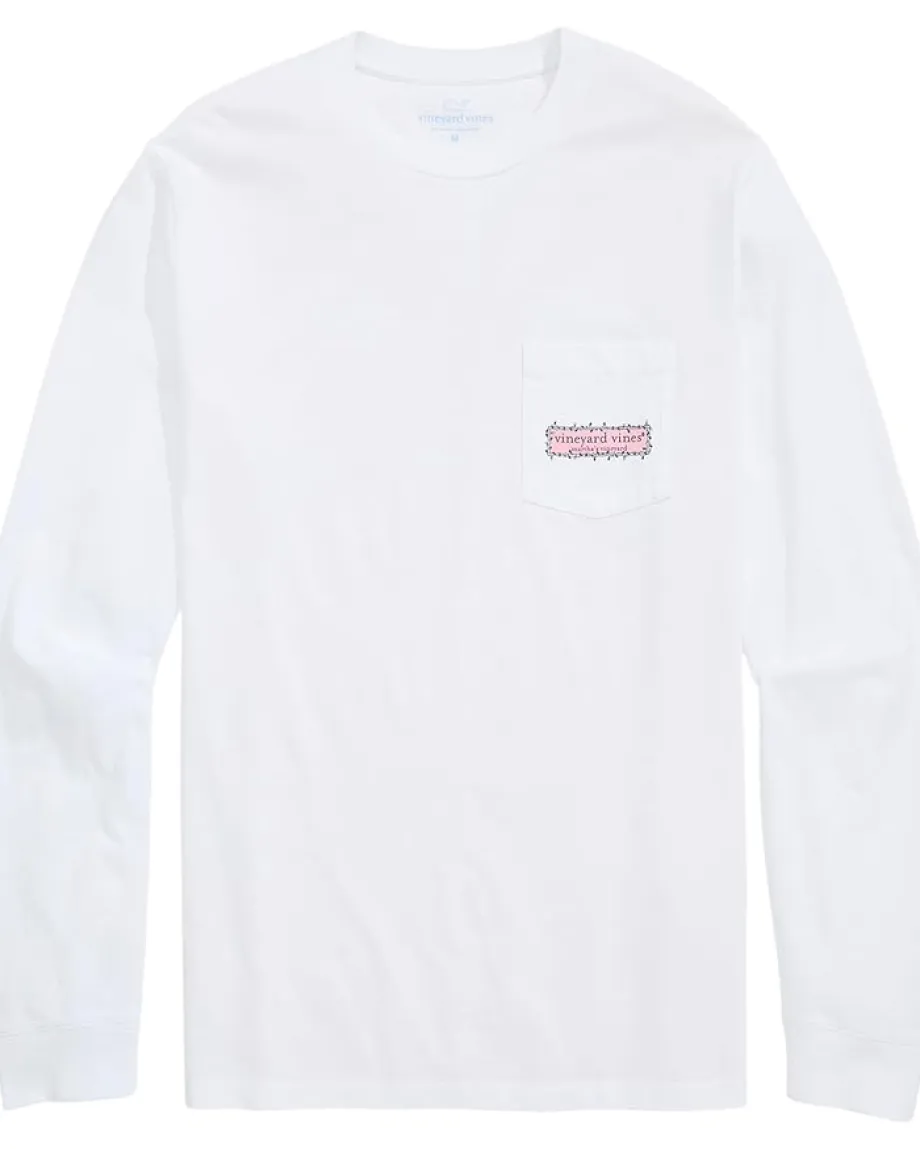 - Add a dash of style to your look without compromising on comfort wearing the Vineyard Vines® String Lights Pups Long Sleeve Tee. The pull-on style tee features a crew neck, long sleeves, a patch pocket at the left chest, a straight hem, and a relaxed fit that feels just right. The eye-catching graphic details at the chest pocket and back make this apparel one of a kind.