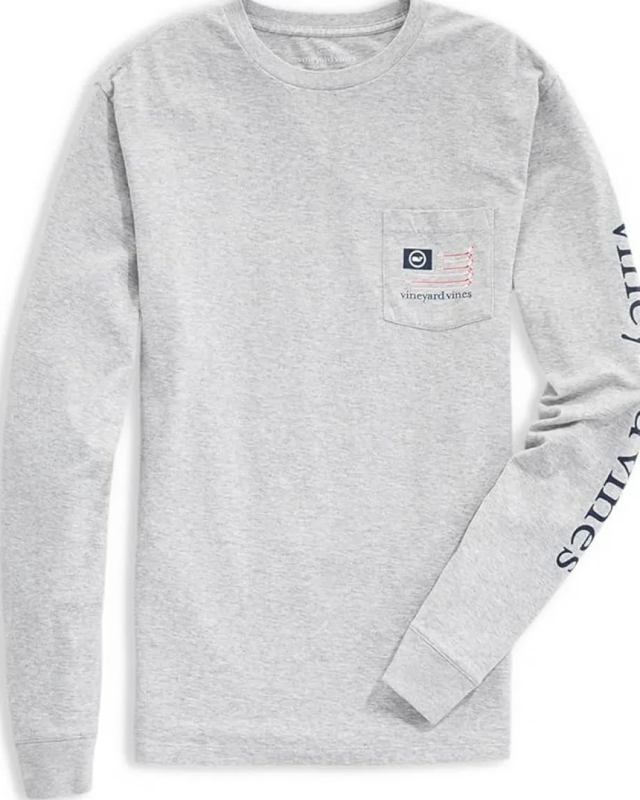 - Show off a casual yet chic look at the next day out wearing the Vineyard Vines® Long Sleeve Hockey Flag Pocket Tee. Crafted with a relaxed fit that feels just right, the pull-on style tee features a crew neck, long sleeves, a patch pocket at the left chest, and a straight hem. The graphic details at the chest pocket, sleeve, and back add style and authenticity to the look.