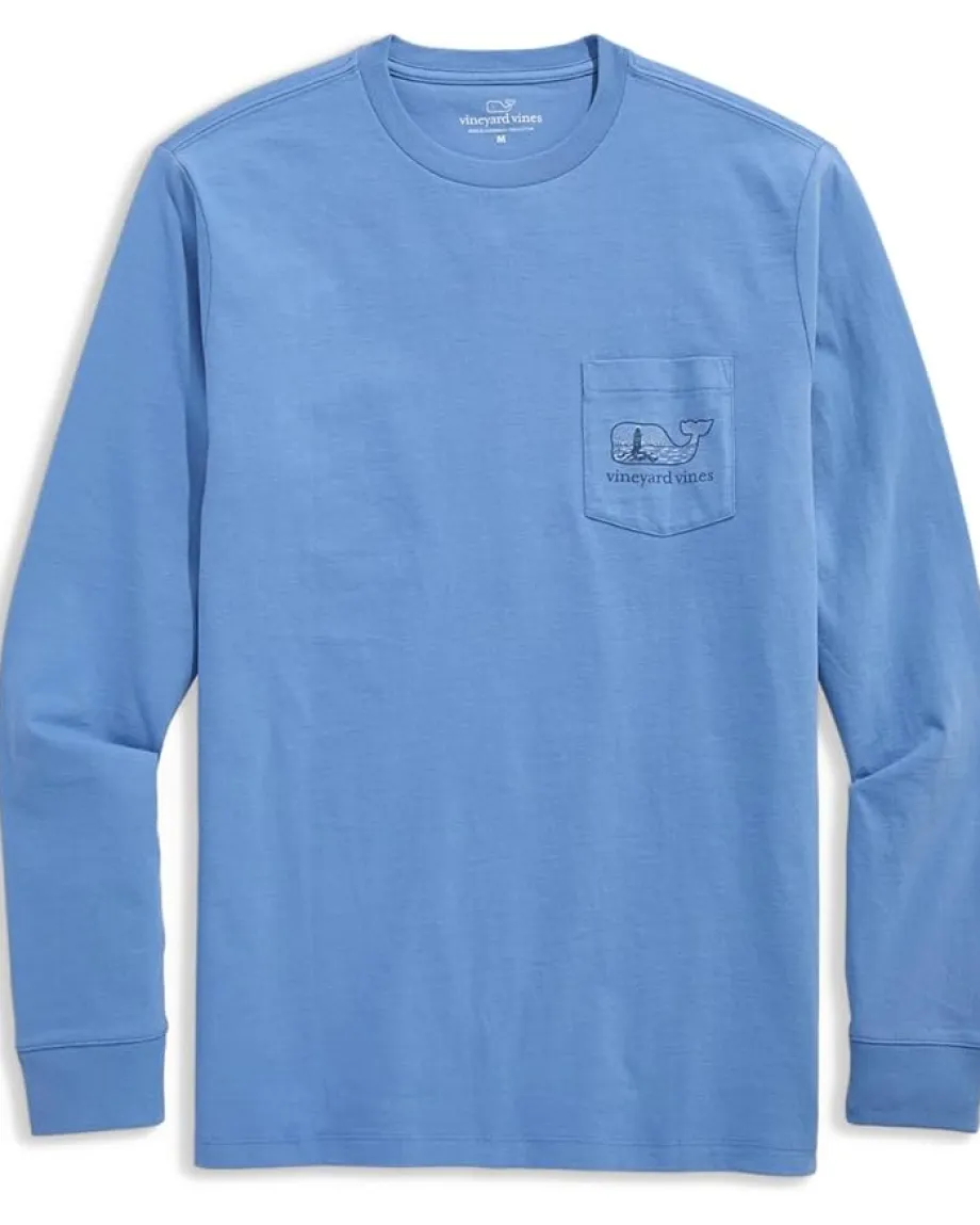 - The vineyard vines® Snowy Lighthouse Whale Fill Long Sleeve features signature whale logo filled with a snowy lighthouse scene, evoking cozy charm with a nautical nod. A chest patch pocket adds utility and structure, while the relaxed fit silhouette makes it perfect for layering or lounging.