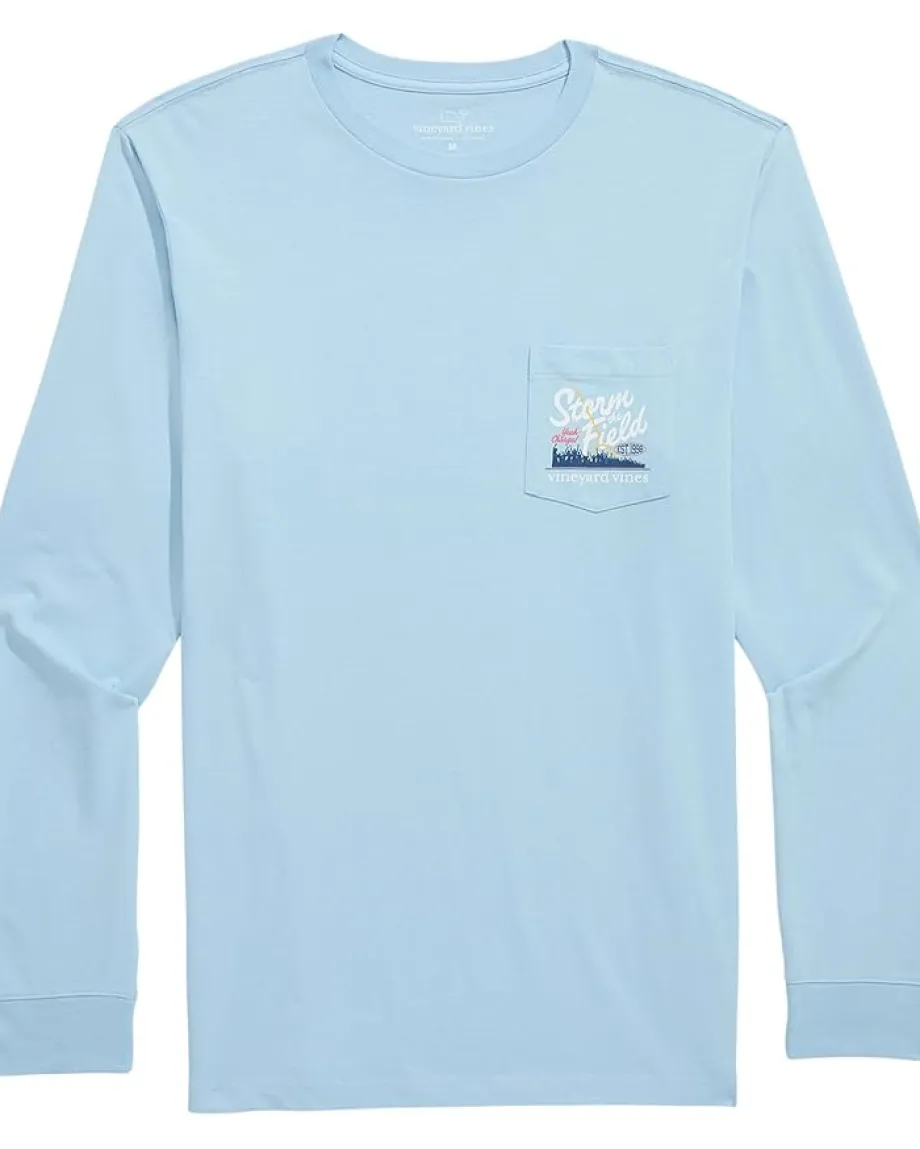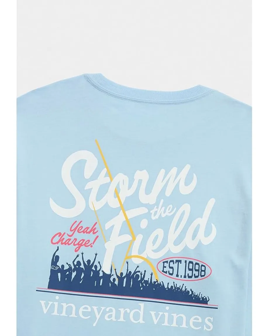 - Bring sporty spirit and laid-back comfort together with the Vineyard Vines® Storming The Field Long Sleeve Tee. The “Storming The Field” design with brand lettering captures the rush and thrill of the moment with dynamic artwork. It has a ribbed crew neckline, long sleeves with ribbed cuffs, a patch pocket on the left chest, and a straight hem.
