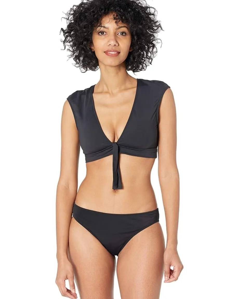 - You’re ready for the pool or beach in the Bleu Rod Beattie® Kore Tie Front Cap Sleeve Crop Top with Removable Cups, providing shoulder and back coverage with a modern, flattering look.