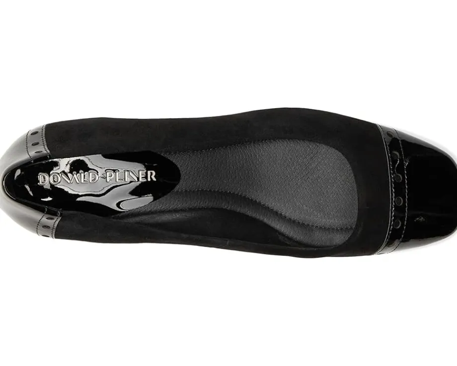 - Take on a classic style that looks polished and sophisticated by wearing the Donald Pliner® Dreww Heels. Crafted with a crepe elastic upper, leather lining, and leather insole with memory foam sock lining, the heels are perfect for both casual or formal occasions. These feature a squared toe shape and solid block heel.