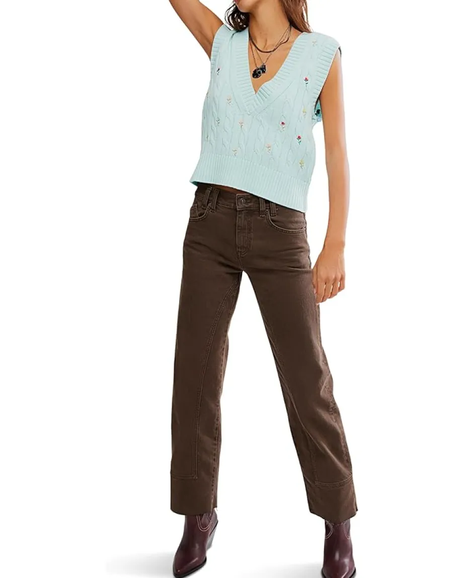 - It’s all in the details with this adorable cable knit vest adorned with delicate floral embroidery. This pull-on style vest features a V-neckline in a sleeveless design with ribbed trim.