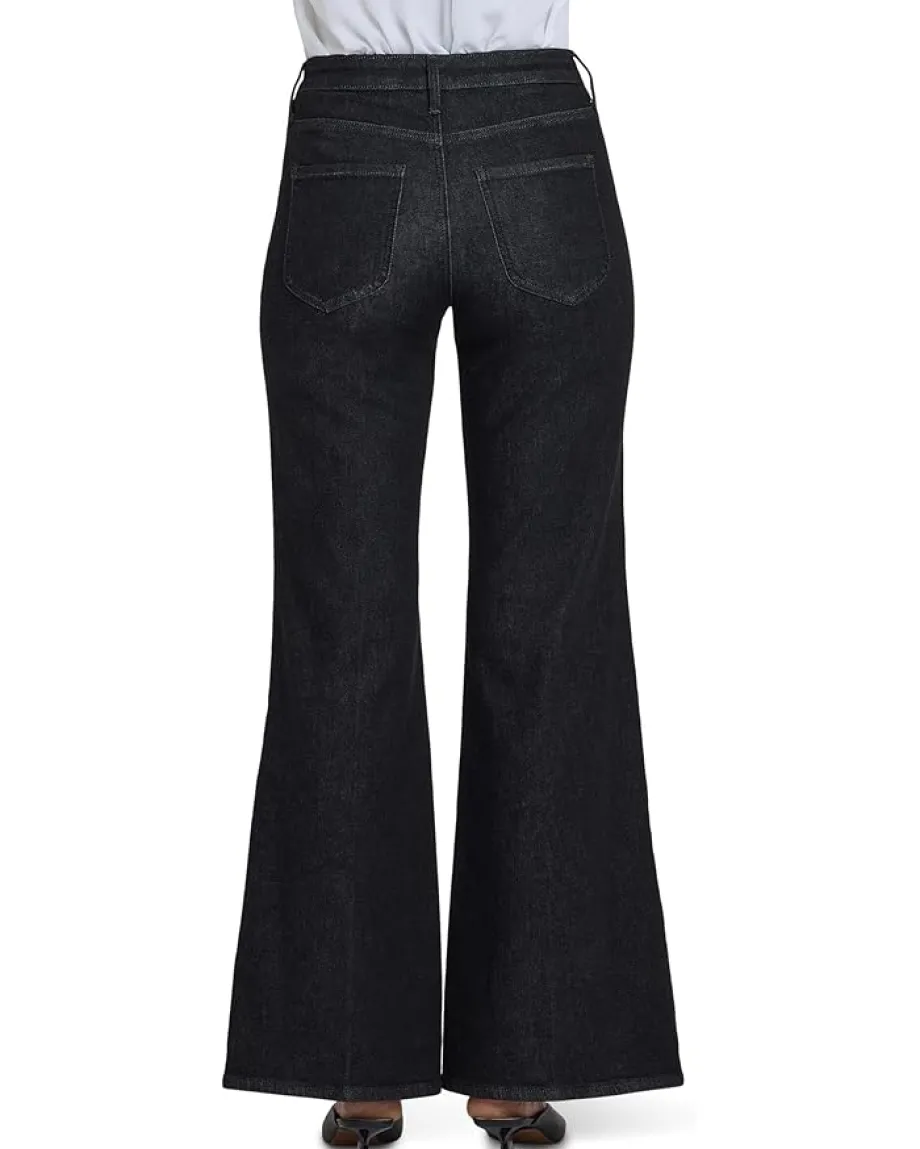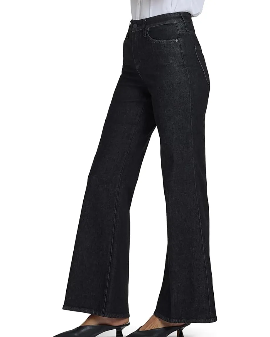 - NYDJ® High-rise Mia Palazzo Jeans make a bold, breezy statement with their super-flared legs. Sitting high on the waist, this pair has a flattering fit that hugs the hips and thighs and is detailed with center-leg creases. Made with Lift Tuck Technology® to flatten in the front and flatter curves in the back. The regular fit jeans feature a wide-leg style with belt loops, zip-fly, and button closure.