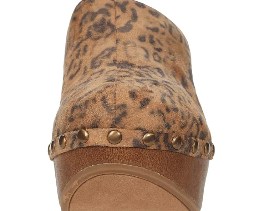 - Vegan leather uppers are outlined by stud accents in the fashion-forward Yellow Box® Baldwyn. These clog wedges sit atop a bold rocker outsole to propel you through the gait cycle.