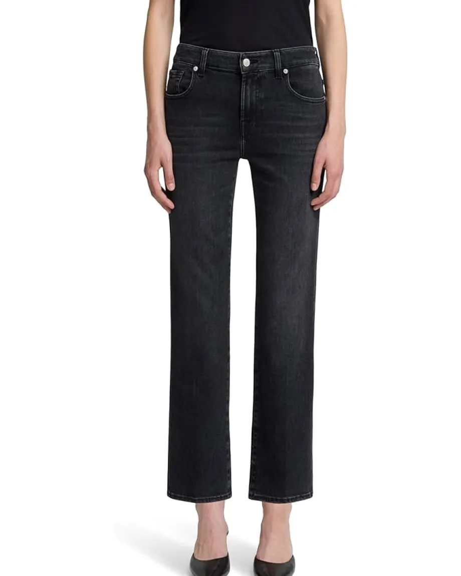 - The 7 For All Mankind® Calie Straight Ankle is a classic and authentic denim feel with stretch. Featuring beltloop waistband, zip-fly, button closure, classic five-pockets style, straight fit, high-rise silhouette, and flat front. Pair it with a plain t-shirt for a classic look.