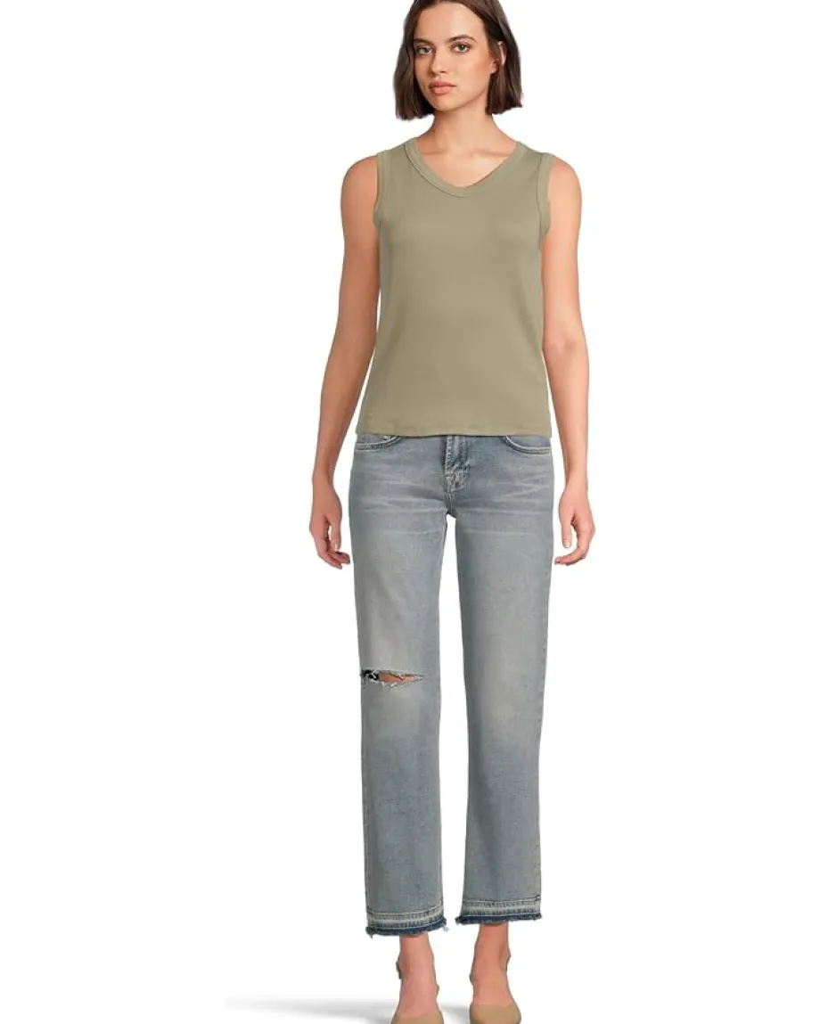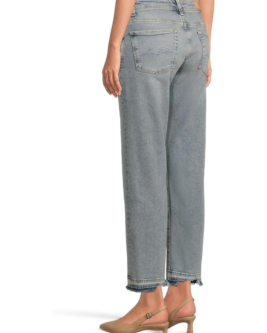 - The 7 For All Mankind® Calie Straight Ankle is a classic and authentic denim feel with stretch. Featuring beltloop waistband, zip-fly, button closure, classic five-pockets style, straight fit, high-rise silhouette, and flat front. Pair it with a plain t-shirt for a classic look.