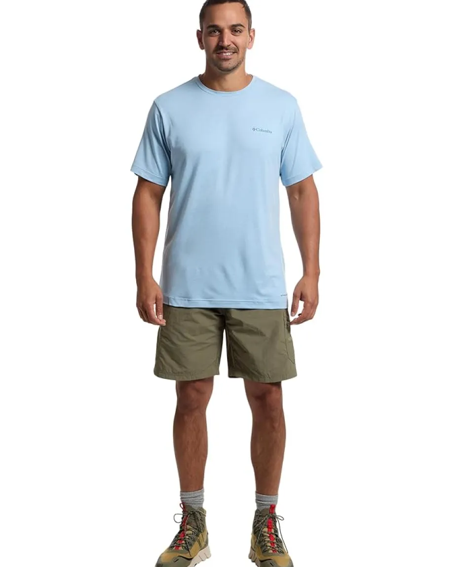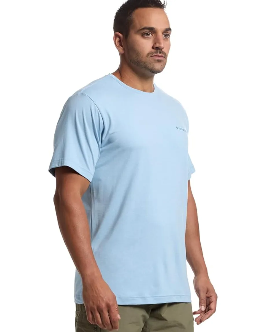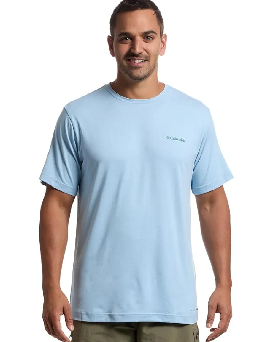 - Stay cool on the trail wearing the Columbia® Kwick Hike Back Graphic Short Sleeve Tee. It features a crew neckline, short sleeves, and rounded hem. The bold back graphic adds a touch of personality, while the moisture-wicking technology keeps you feeling fresh.