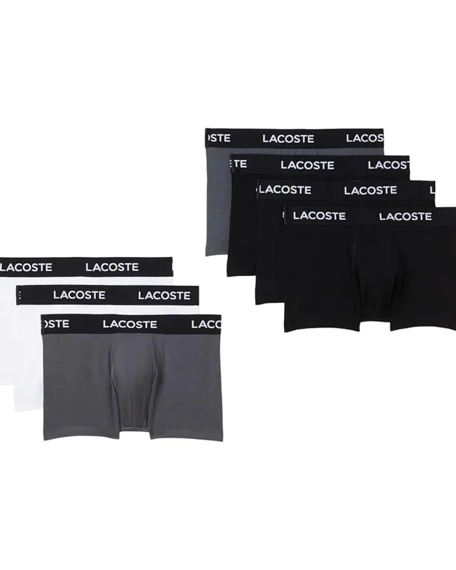 - The foundation of style: The Lacoste® 7-Pack Logo Waist Trunks provide the perfect starting point for any look with their timeless design and superior comfort. Designed for the modern man who values both performance and flair, these mid-rise trunks offer a perfect balance of support and freedom. The soft brushed interior of the waistband prevents irritation, keeping you comfortable all day, while the elasticized waistband with a signature logo ensures a secure fit that stays in place without pinching. Each trunk features Lacoste’s iconic allover branded waistband with contrasted wording and stripe detailing, adding a touch of sporty sophistication to your essentials.