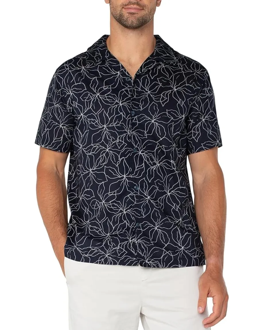 - Modern meets classic in the versatile Liverpoolâ„¢ Los Angeles Short Sleeve Button Up Camp Shirt. Featuring an allover botanical print, this button-down shirt is made from cotton fabric for all-day comfort. It is styled with short sleeves, a collared neckline, and a straight hem. This printed shirt can be dressed up or down for any occasion with shorts, jeans, or a blazer and chinos.