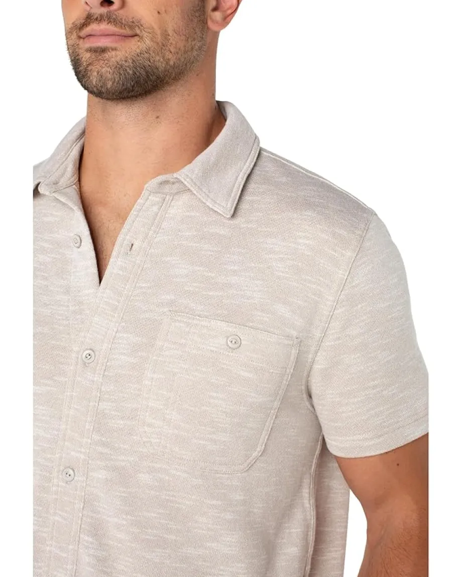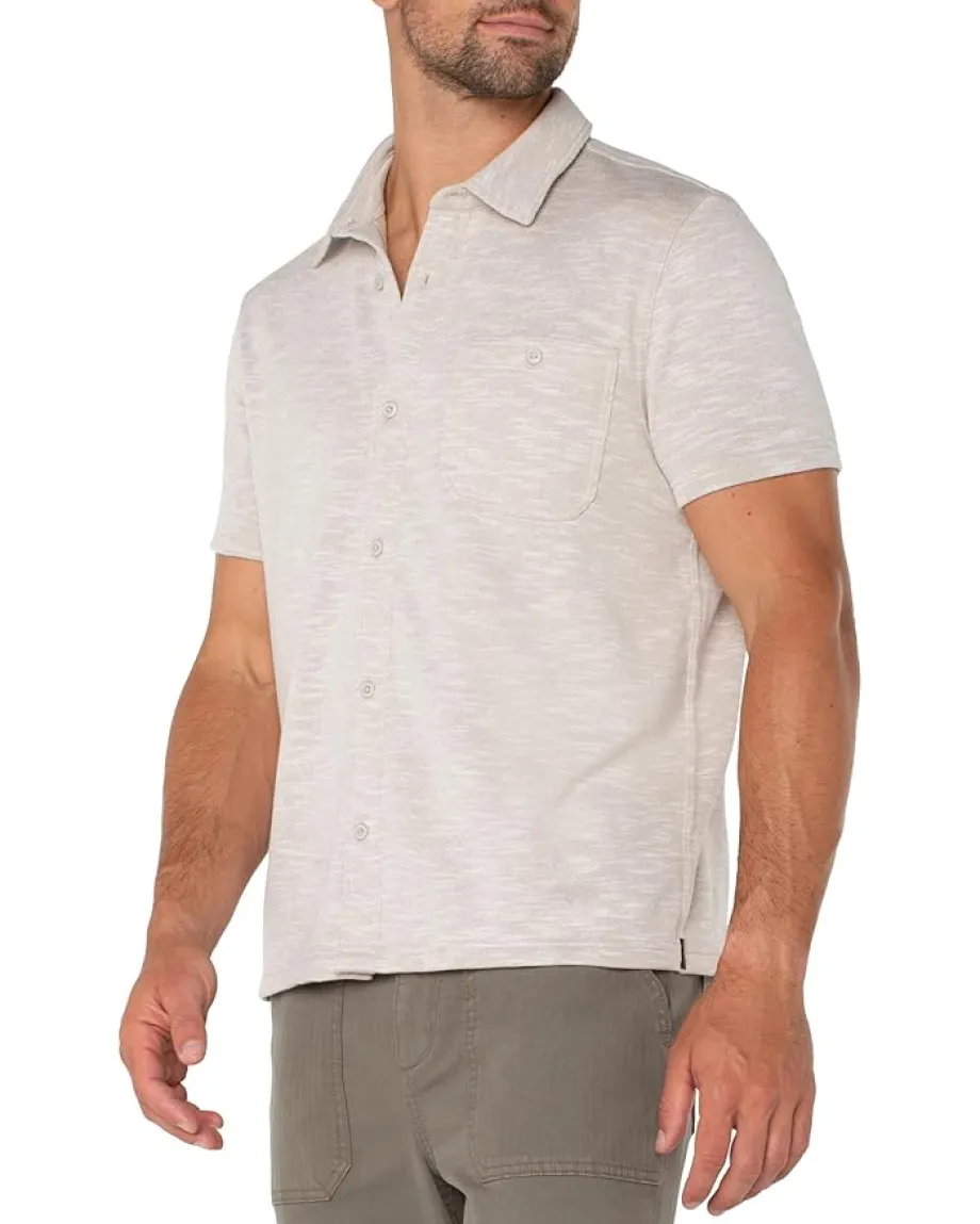 - Stay high on fashion and comfort wearing Liverpoolâ„¢ Los Angeles Short Sleeve Button Up Shirt. The collared shirt features a button-up closure, short sleeves, a button-through patch pocket on the left chest, and a straight hem.