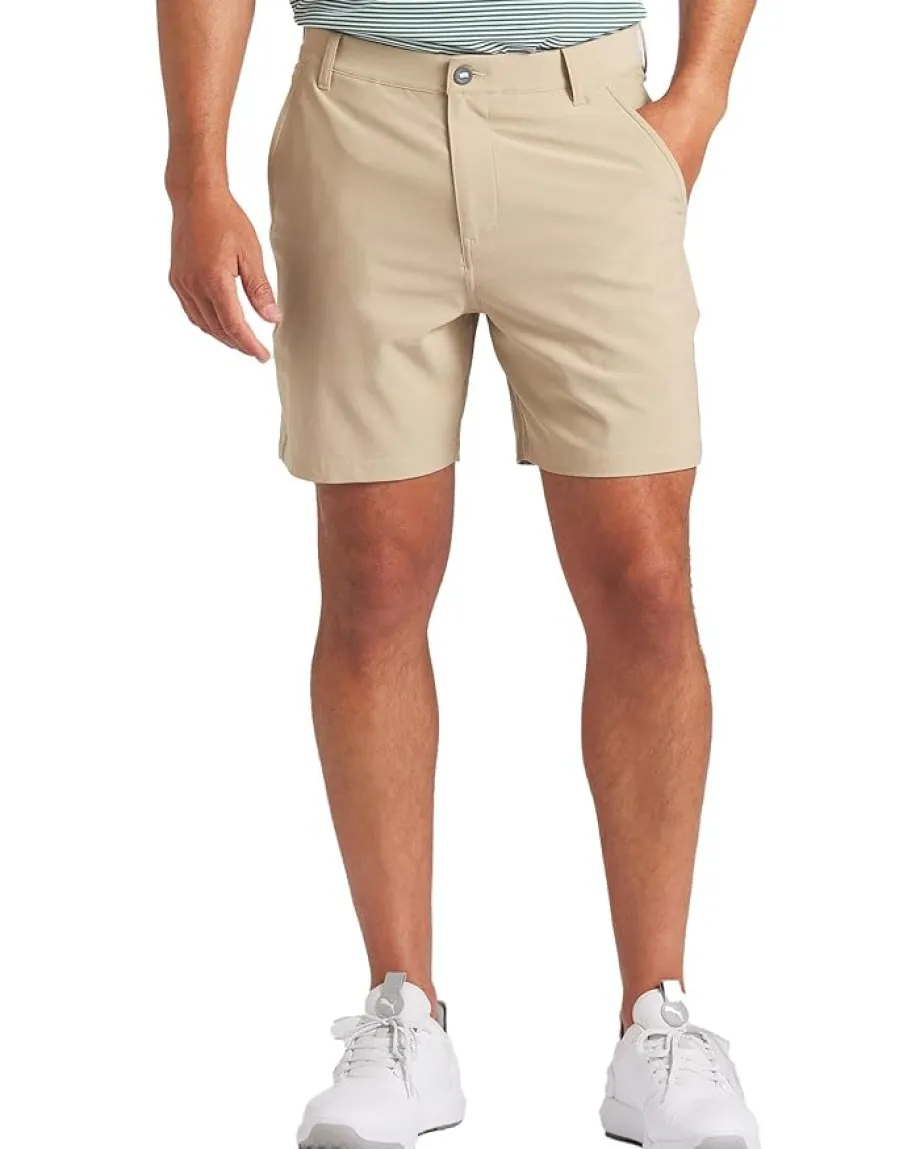 - Move freely on the golf course wearing PUMA® Golf 101 7″ Solid Shorts. They have waistband with loops, front zip-fly and button closure, and thigh-length construction. A side zipper pocket, slash hand pockets, and back slash pockets of the pants make the sports outing comfortable.