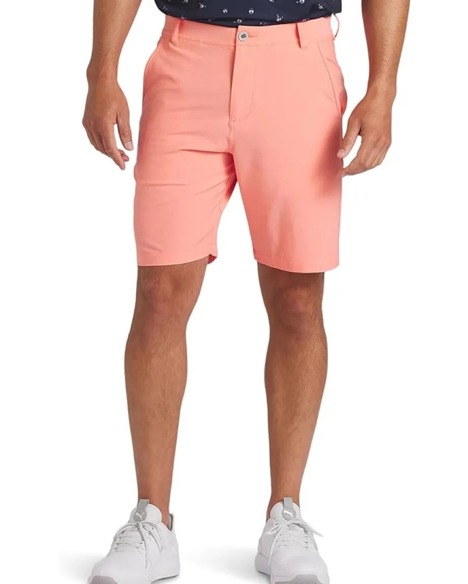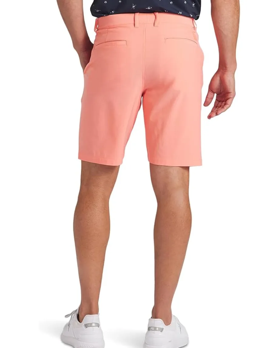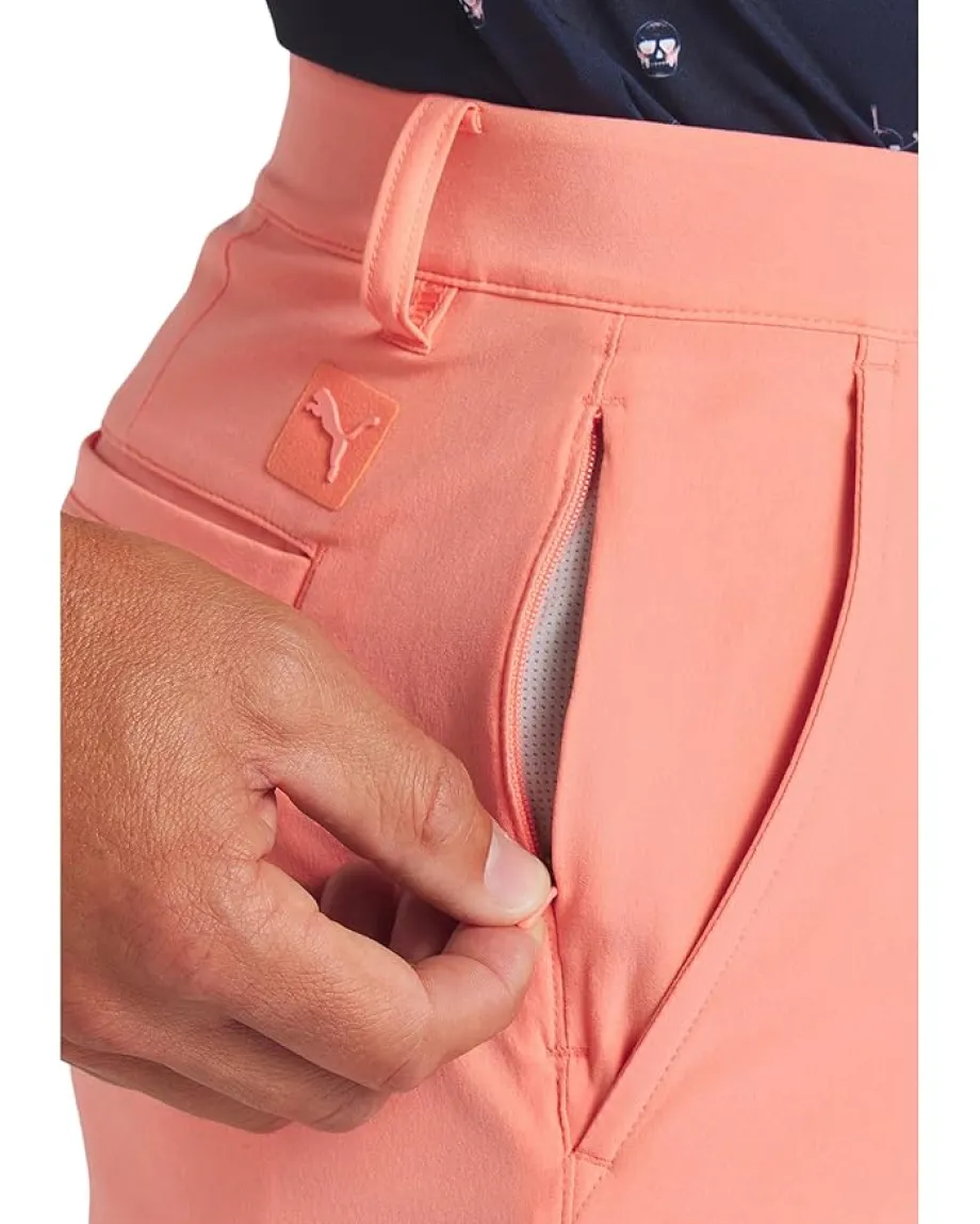 - Accentuate a sleek and sophisticated vibe by complementing shirts with the PUMA® Golf 101 9″ Solid Shorts that offers a regular fit. The shorts feature a buttoned closure, belt loops on the waist, two hand pockets on the front, and two welt pockets on the back for easy storage.