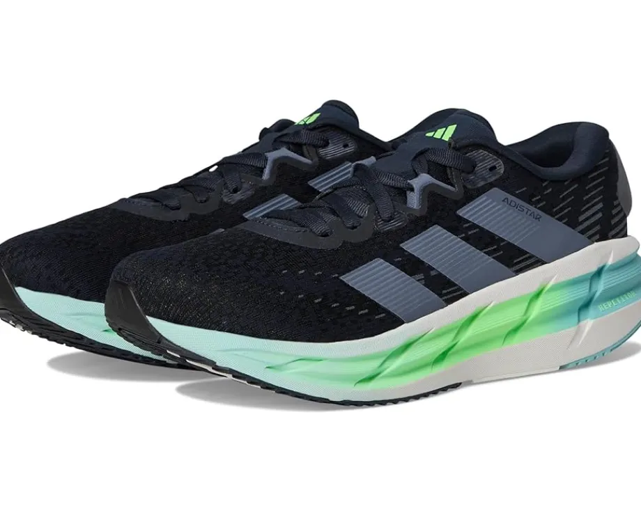 - The adidas® Adistar 4 Running Shoes deliver comfort and stability for long-distance training. These shoes provide lightweight cushioning with energy return, ensuring a smooth ride. The synthetic rubber outsole is built for high-mileage runs, offering reliable traction and support.