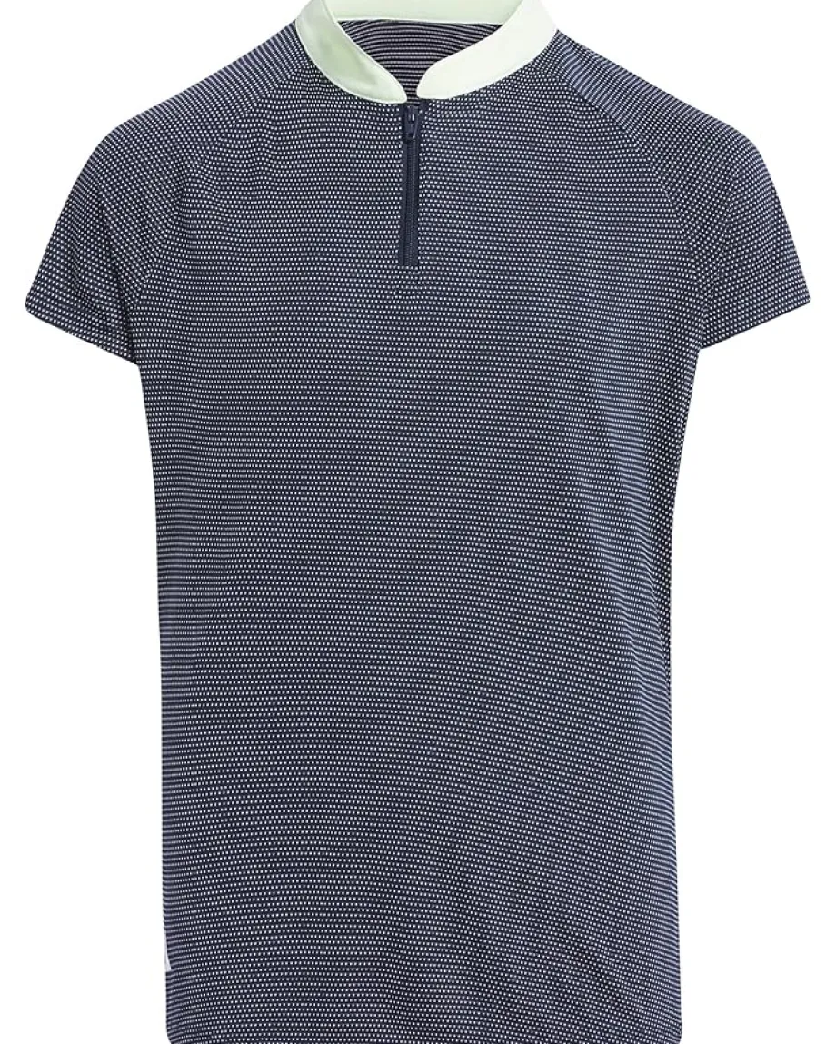 - Play comfortably and swing with confidence in the ultra-soft adidas® Golf Kids Zip Polo Shirt. This junior girls’ golf polo shirt is made of soft doubleknit fabric that feels smooth to the touch. It features band collar with quarter-zippered placket, short raglan cap sleeves and a shaped hem that give it a form-fitting look. AEROREADY helps keep you dry when the weather warms up and through high-pressure shots.