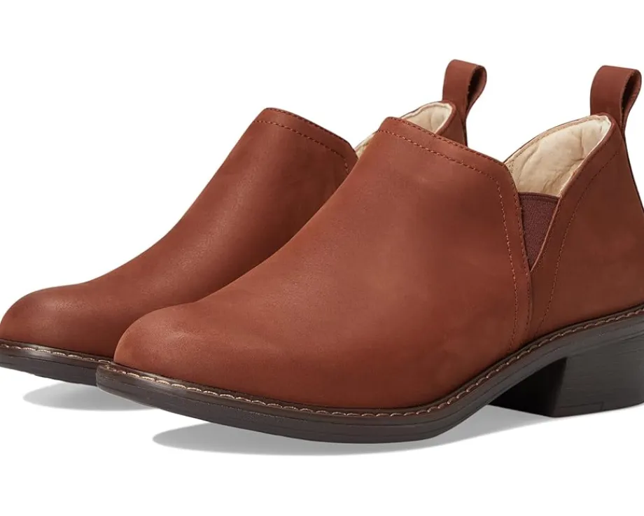 - Experience unmatched comfort wearing the Alegria® Merle boots. These booties offer timeless sophistication with the ease and comfort of a slip-on design. With a leather upper and double elasticized gores for easy on-and-off, just slip-on and go. Feel supported from day to night with the removable micro suede Signature Arch™ footbed. Featuring round toe design, pull tab, and low-stacked heel for an elevated look.