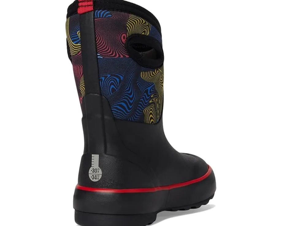 - From playgrounds to puddles, the Bogs® Kids Classic II – Warped Stripes boots are made for nonstop fun. Crafted from rubber upper, nylon lining, and EVA insole, this pair of boots features round toe, nylon footbed shank for stability and support, durafresh natural bio-technology that activates to fight odors, Bogs max-wick evaporates sweat to keep feet dry, and durable, hand-lasted rubber over a four-way stretch inner bootie. These boots are constructed with 7mm Neo-Tech waterproof insulation.