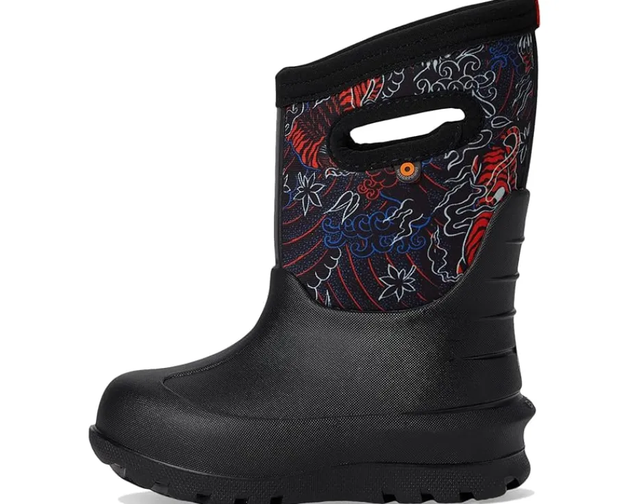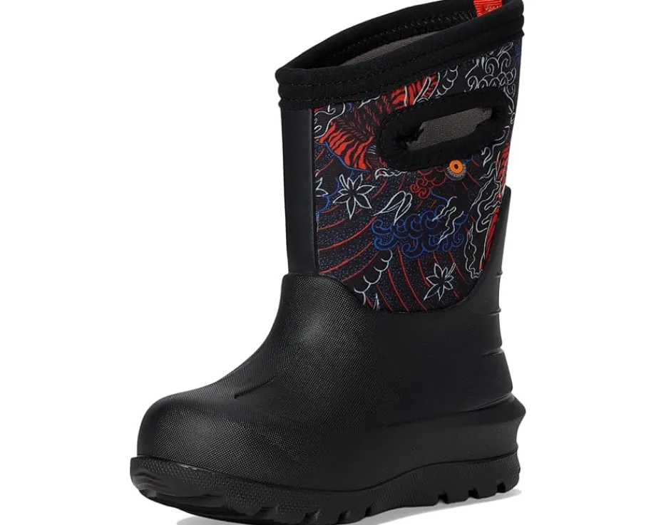 - Roar through the rain wearing the Bogs® Kids Neo-Classic Tiger! Designed for adventurous little feet, these mid-calf boots feature a durable rubber upper and slip-resistant BioGrip outsole to keep them steady in any weather. Waterproof 5mm Neo-Tech™ insulation and BLOOM® eco-friendly EVA footbed offer warmth and comfort, while rebound cushioning provides all-day energy return. With DuraFresh™ bio-technology to fight odors and a reflective temperature rating mark for safety, these pull-on rain boots ensure a snug fit with Heel Lock technology.