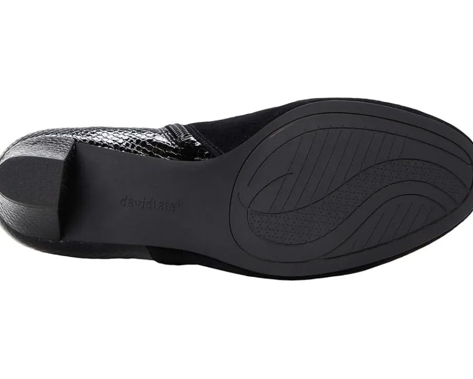 - The David Tate® Marconi heeled bootie gives you sleek and polished the style. With a premium leather upper and elastic goring at the sides with a complementing zipper closure, this boot will be a constant go-to throughout the season.
