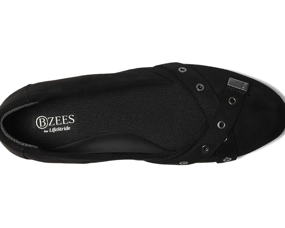 - Designed with a crisscross band featuring elegant holes on the upper, the Bzees® Kira Skimmers showcase an elegant look. This low-top footwear boasts a polyester lining, ensuring durability and comfort. The outsole is crafted from polyurethane for flexibility and support, while the insole is made from ethylene vinyl acetate for cushioning with every step.