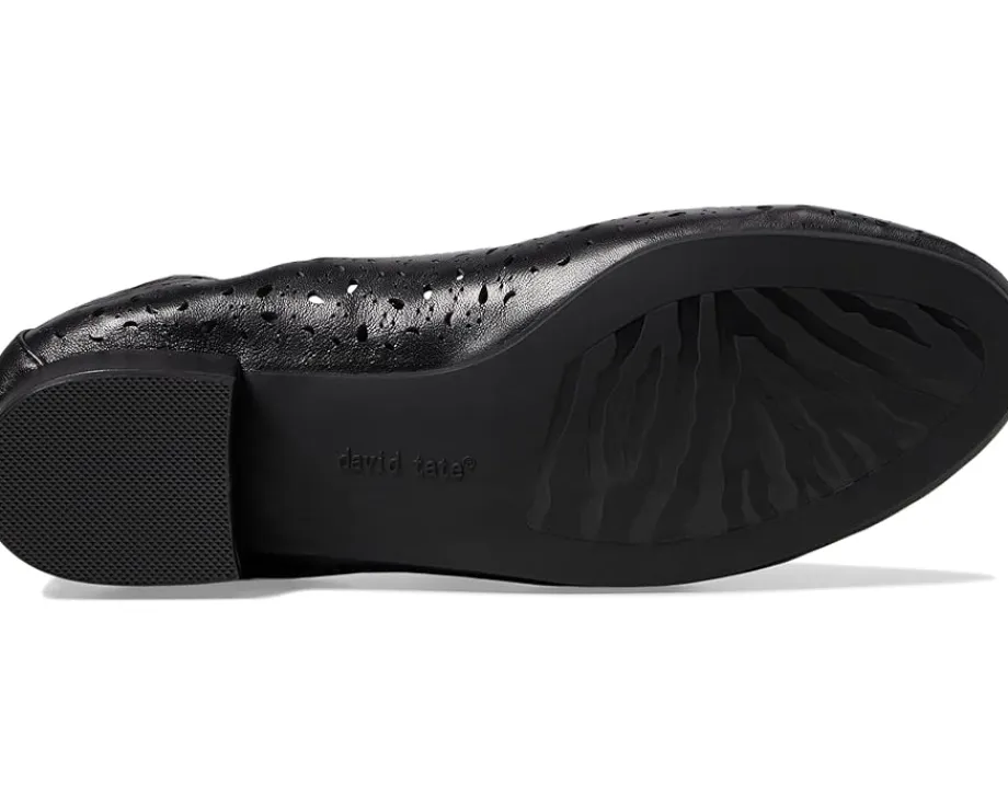- The David Tate® Concept low block heels feature allover lazer cutout detailing, round toe design, and foam padded man-made footbed. It has a slip-on construction and elasticized top line for easy wear.