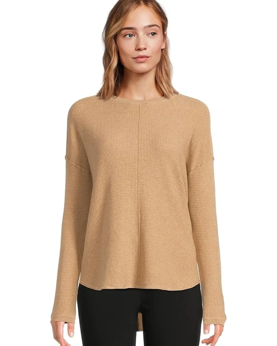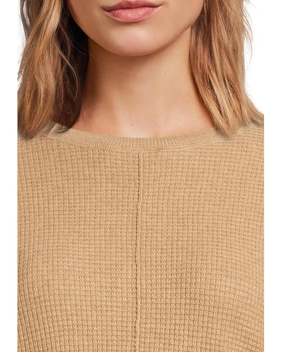 - Find the perfect layer of cozy warmth in the Elliott Lauren™ Cotton Cashmere – Round Neck Waffle Stitch Drop Shoulder Long Sleeve Sweater. Featuring a round neckline with long sleeves, dropped shoulders, raised seams, and a curved hemline.