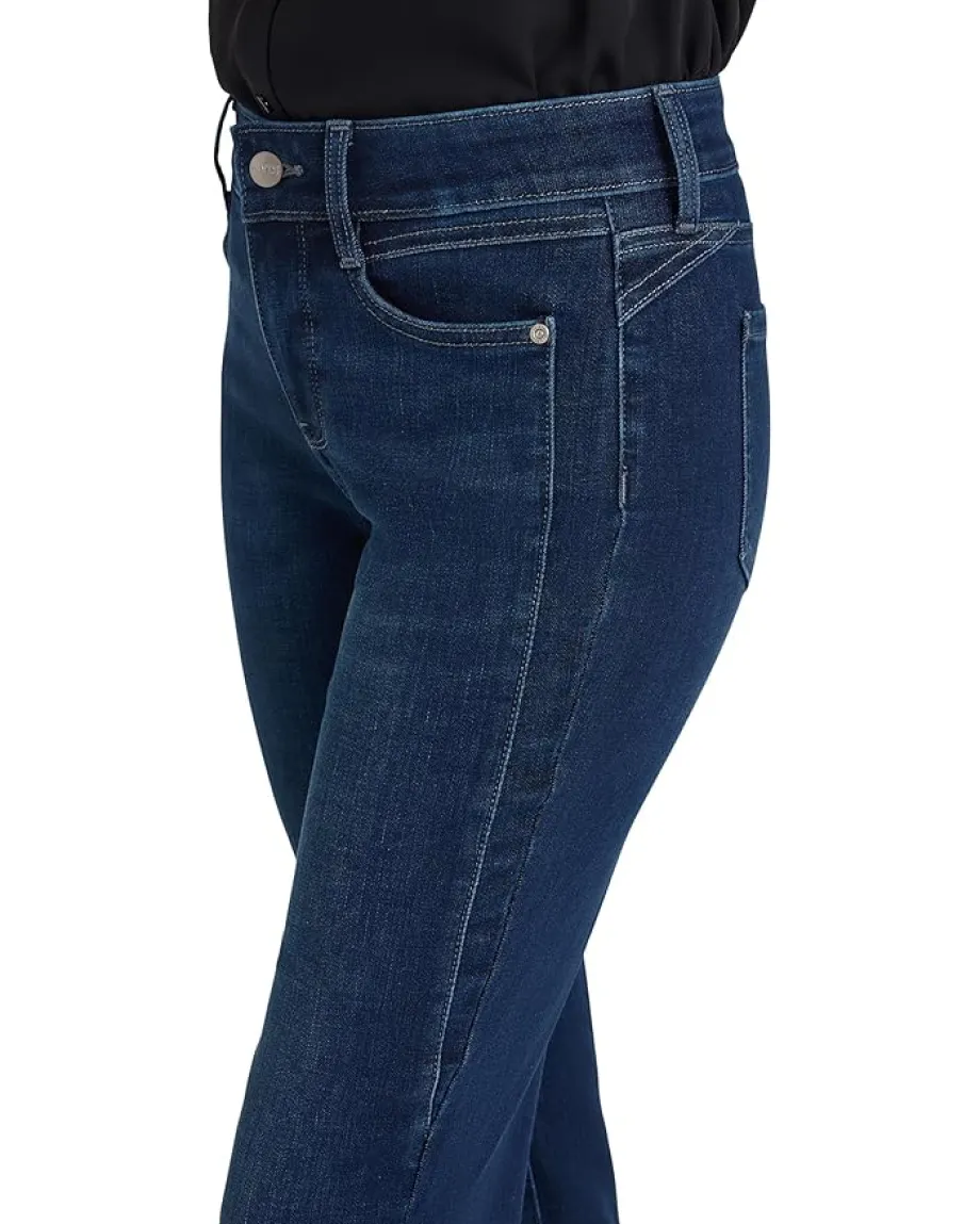 - Flaunt an uber-stylish look wearing the NYDJ® Petite Marilyn Straight Paneled Jeans. The curve-sculpting, figure-elongating construction of this jeans in Blacken Blue pairs well with everything, in a classic straight-leg silhouette. It features a mid-rise waist with belt loops, five-pocket styling, a zip-fly with button closure, and paneled seam detail in the front and back. The jeans is made with Lift Tuck Technology® to flatten in the front and flatter curves in the back.