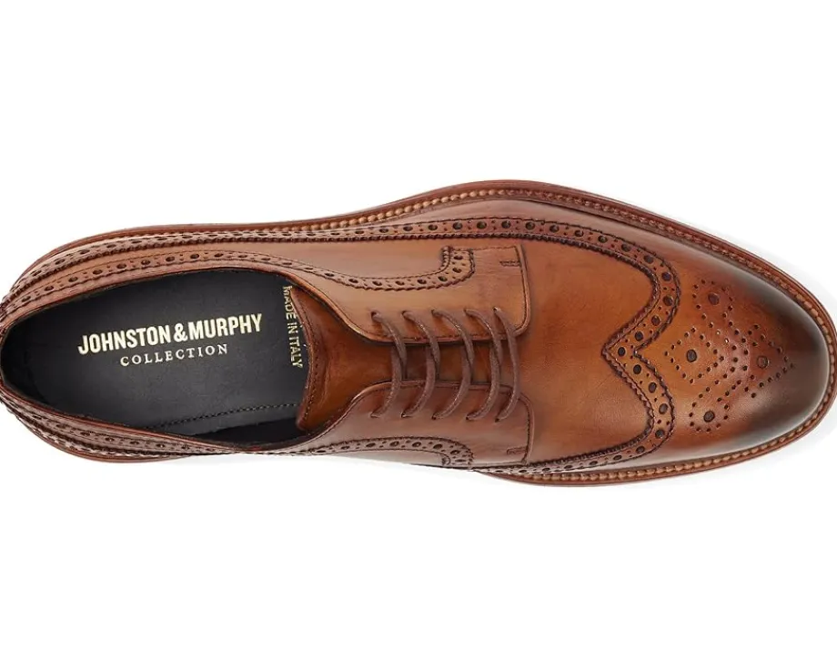 - Be the modern gentleman wearing the Johnston & Murphy® Collection Jenson Longwing. Crafted from soft leather upper, it features lace-up closure for a snug fit. It comes with leather lining and cushioned, leather-covered footbed for comfortable wear all day long.