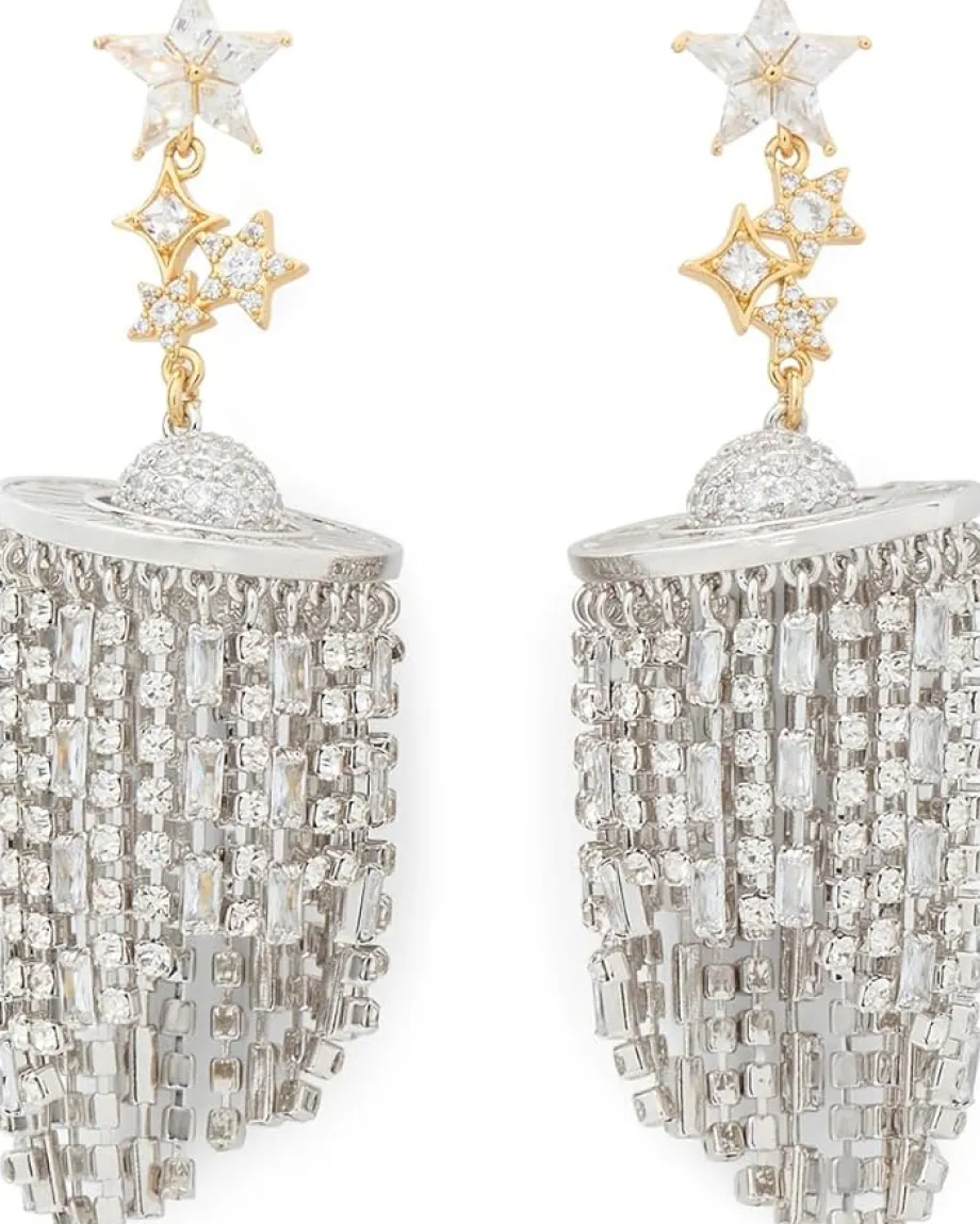 - Showcase contemporary flair wearing the Kate Spade New York® Space Cadet Fringe Earrings. The pair features dangling rhinestones and Signature Spade ear clutch closure.