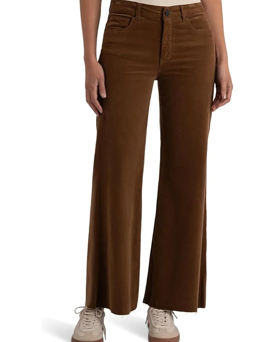 - Laid-back with the perfect amount of style, wide leg fitted through the hips. The KUT from the Kloth™ Meg High-Rise Fab Ab Wide Leg Raw Hem-Long Inseam in Cognac is fitted through the hips and thighs and finishes off with an easy-to-style wide-leg for a modern take on this trending silhouette. The stretchable jeans feature a high-rise waist with belt loops, a zip-fly, and a button closure.