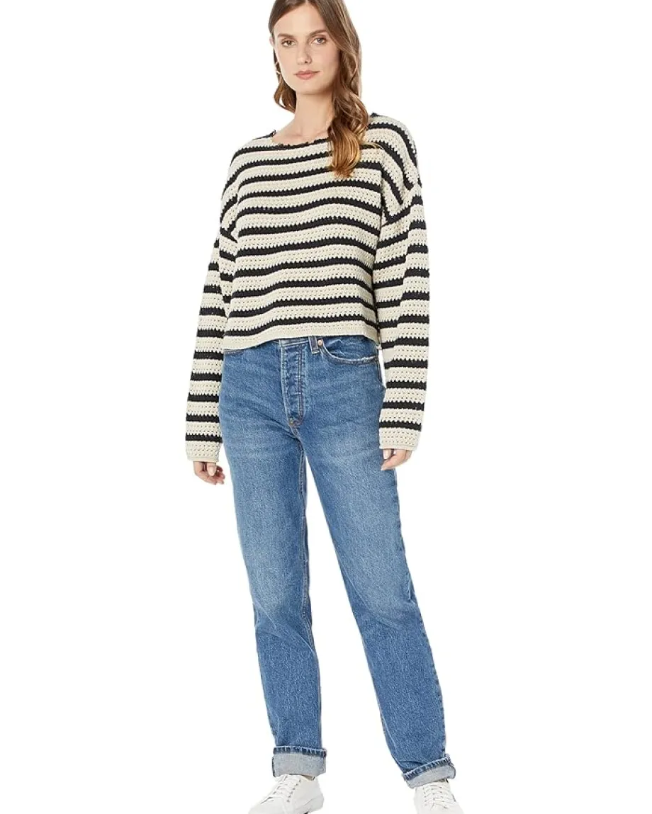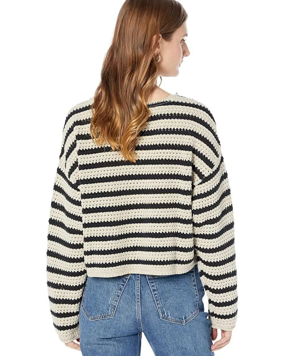 - Lucky Brand® Pointelle Stripe Sweater has a versatile style and is perfect for your weekend outings.