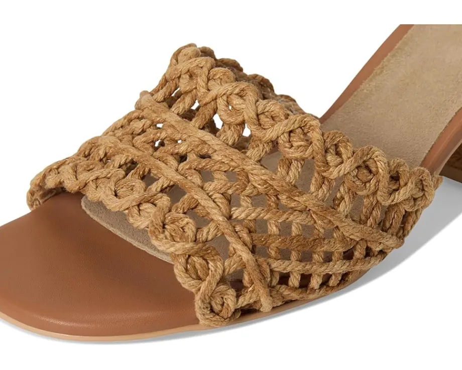 - Walk light and look chic wearing the MIA™ MLE-Idella. Crafted from jute upper, faux leather lining, and insole, this pair of sandals features open round toe, wide jute strap, slip-on style, block heel, and brand detailing on the footbed.