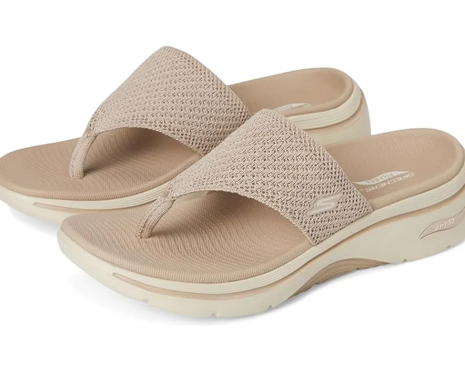 - Keep your feet happy in warmer weather with the SKECHERS® Performance Arch Fit 2.0 Quick-Dry 3-Pt sandals. These thong sandals feature a quick-dry finished knit mesh upper, lightweight Ultra Go cushioning, and high-rebound comfort pillar technology. The patented Skechers Arch Fit Insole System with podiatrist-certified arch support provides all-day comfort and support. Machine washable and durable, these slip-on sandals are APMA-accepted.