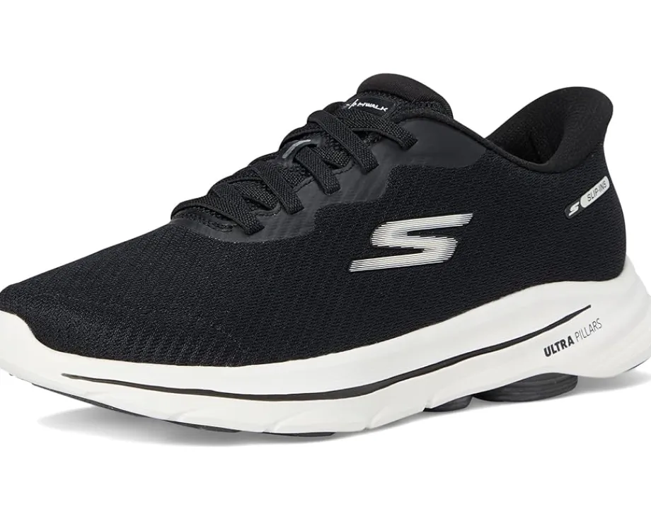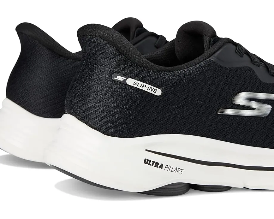 - Step-in to convenient walking comfort and cushioning wearing the SKECHERS® Performance Go Walk 8 Pelayo Hands Free Slip-in sneaker. Designed with an exclusive Heel Pillow™, this athletic slip-on features a mesh and synthetic upper with bungee laces, a Skechers Air-Cooled Goga Mat insole, lightweight ULTRA GO® cushioning, and High-rebound Comfort Pillar Technology for added support.