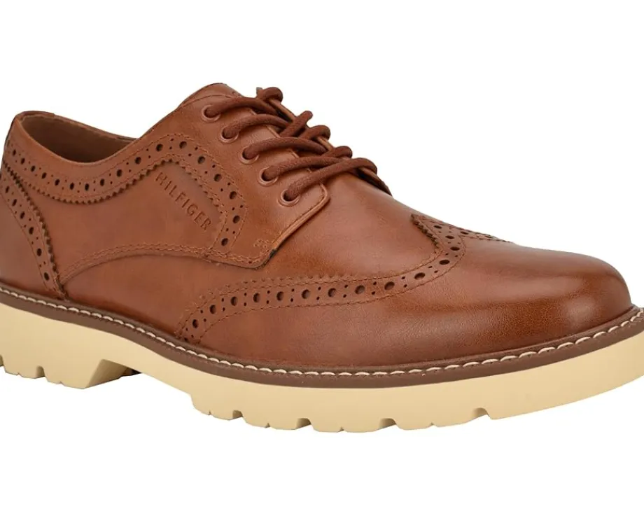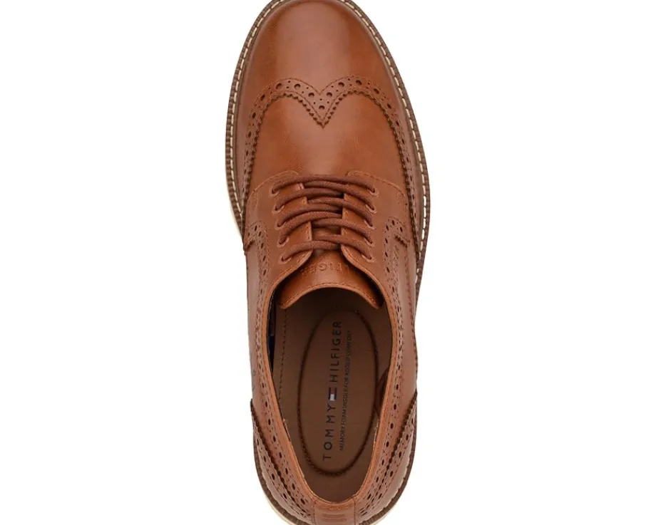 - The Tommy Hilfiger® Trenity shoes are a hybrid oxford with a wingtip toe silhouette, broguing along the sides and back of the shoe, and a casual synthetic rubber outsole. The cushioned memory foam footbed of these loafers is just an added feature for comfort while the polyester lining provides long-lasting comfort and breathability. These dress shoes are designed with faux leather upper with lace-up closure. Perfect to pair with your formal looks and party styles, these cushioned shoes work for different occasions.