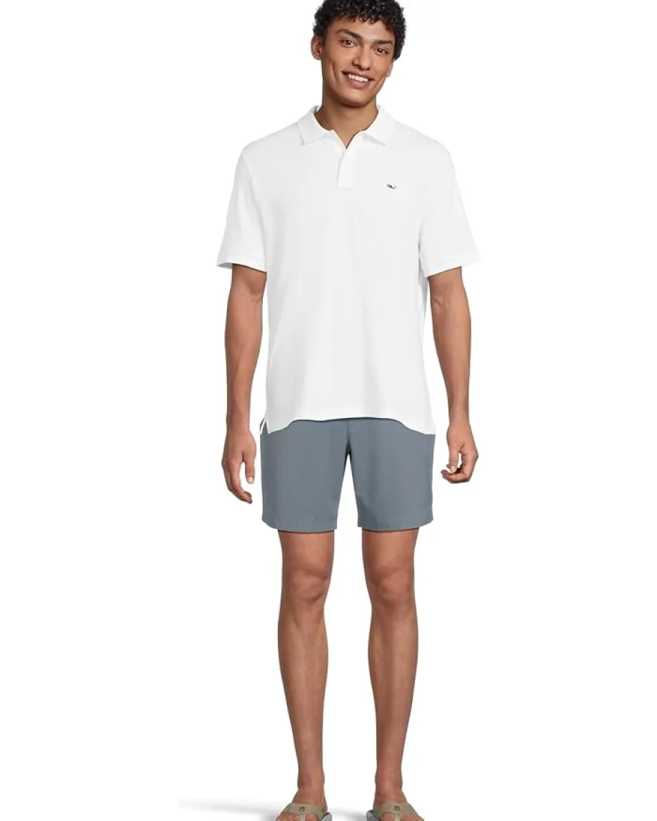 - Attain a striking travel look donning the Vineyard Vines® 7″ On-The-Go Shorts. Designed with zip-fly and button closure, two hand pocket on the front, and belt-loop waistband. Crafted from a moisture-wicking fabric.