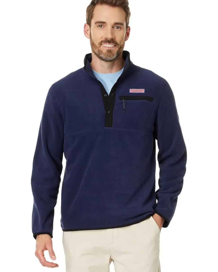 - Everyday adventure in style. The Vineyard Vines® Harbor Fleece Quarter-Snap: Your go-to for casual cool. This supersoft fleece pullover is your go-to for cozy days and effortless style. Featuring a classic fit and long sleeves, it offers all-day comfort. The collared neck with a snap button placket adds a touch of sophistication, while the zippered chest pocket keeps your essentials secure. Perfect for layering or wearing solo, this versatile piece transitions seamlessly from the couch to the coast.