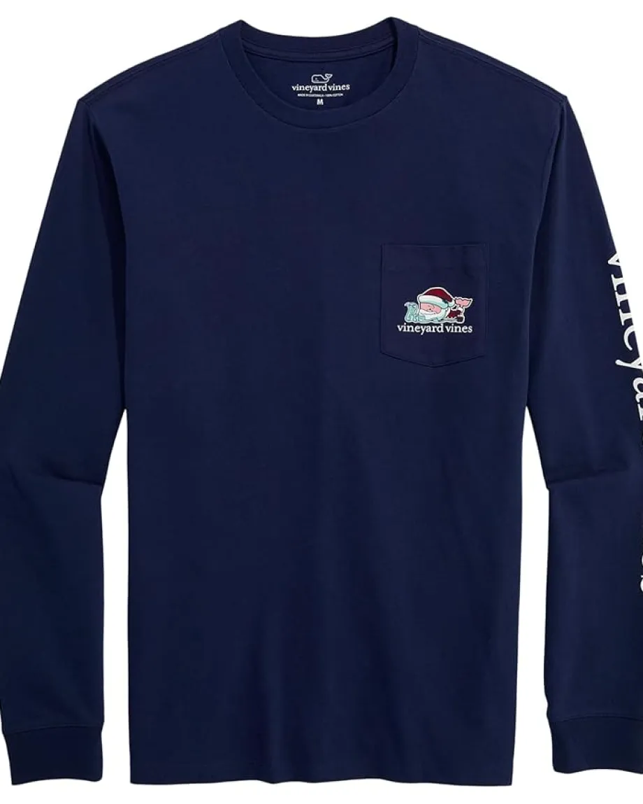 - Take your casual style game a notch higher wearing the Vineyard Vines® Santa Whale List Long Sleeve Pocket Tee. Soft and comfortable, the pull-on style tee offers a relaxed fit that feels just right. It features a crew neck, long sleeves, a patch pocket at the left chest, and a straight hem. The graphic print at the pocket, sleeve, and back gives a trendy touch.