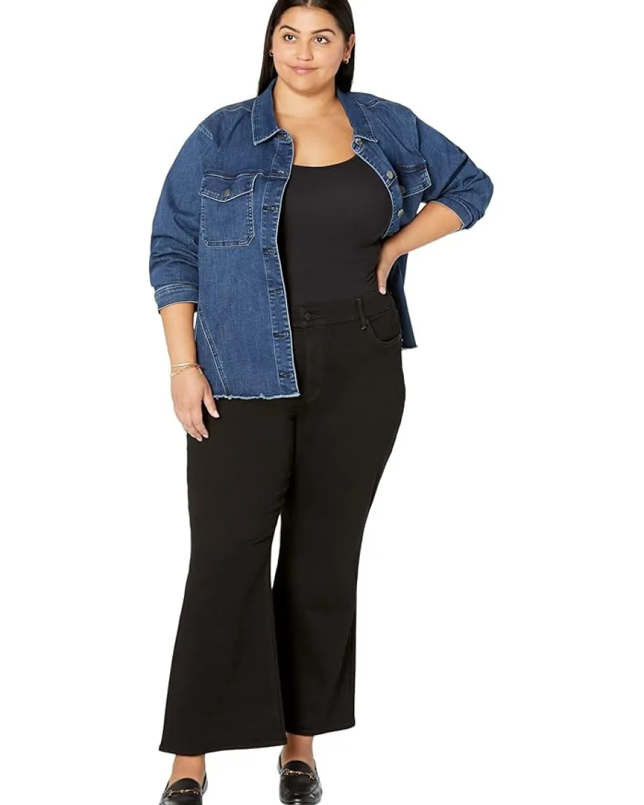 - Comfortable and stylish, the NYDJ® Plus Size Waist Match Relaxed Flare in Black Rinse jeans pair well with different tops.