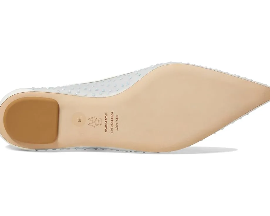 - Studded ornamentations and pointy toe silhouette of the Stuart Weitzman® Emilia Mesh Flats bring an effortless poise to enhance your overall look. The slip-on footwear features leather and breathable mesh upper construction with EVA insole for all-day comfort.