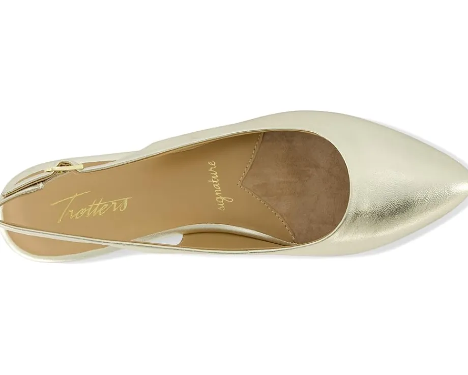 - The Trotters® Evelyn shoes are classic flats with an adjustable strap for comfort. These flat shoes have a pointed toe silhouette and leather insole for everyday use. The leather upper, leather lining, and arch support of these flats make them a comfortable choice. Lightweight and cushioned, these leather flats work for different occasions.