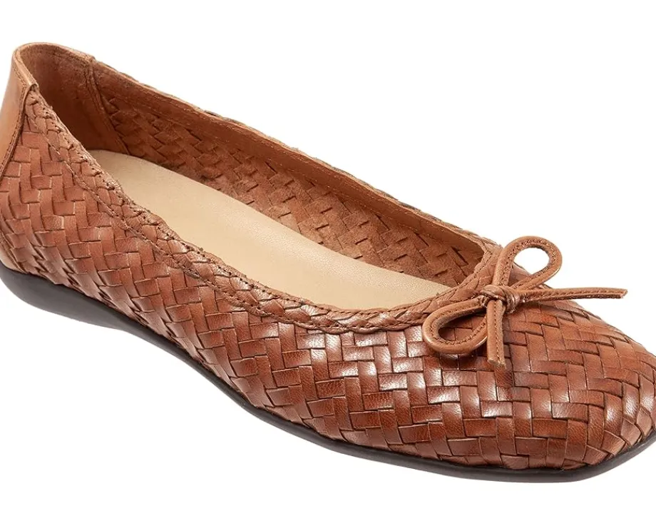 - Mix style and comfort in the Trotters® Gillian featuring a classic slip-on style ballet flat this time with a square toe and woven detail throughout constructed from genuine leather and a well bedded footbed for all day wear.